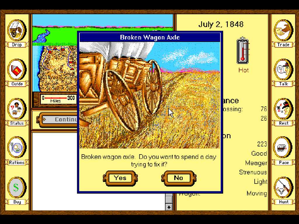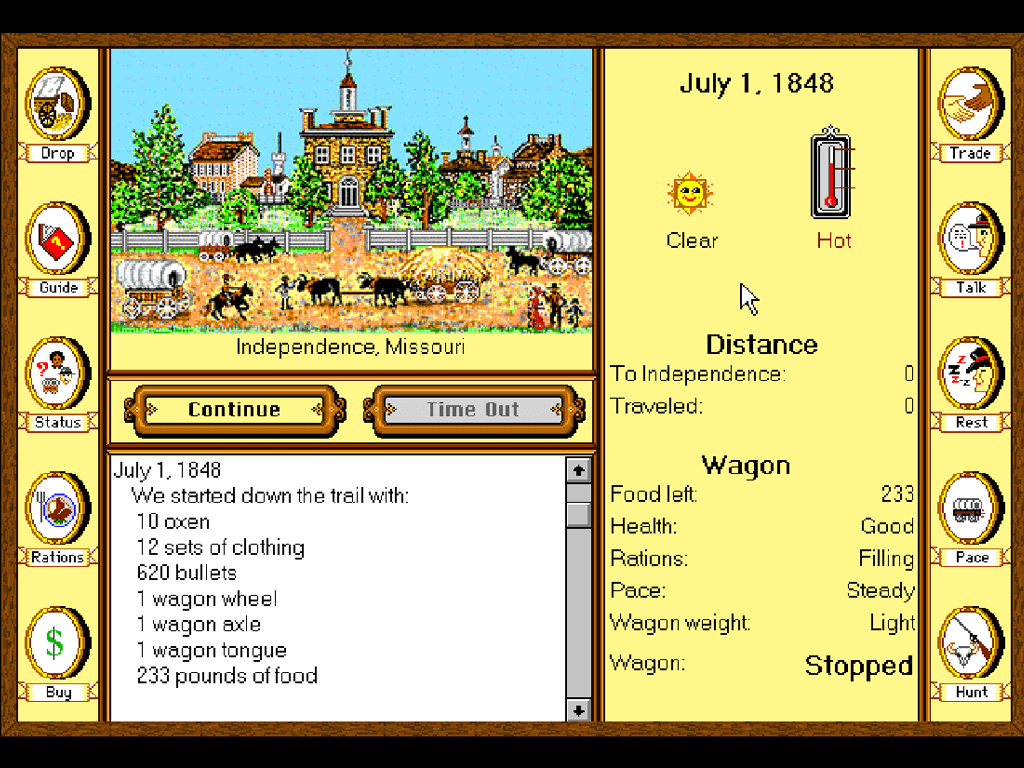 You must allocate resources wisely, decide when to hunt for food, and make critical choices about river crossings, all while managing the health and morale of your fellow travelers.